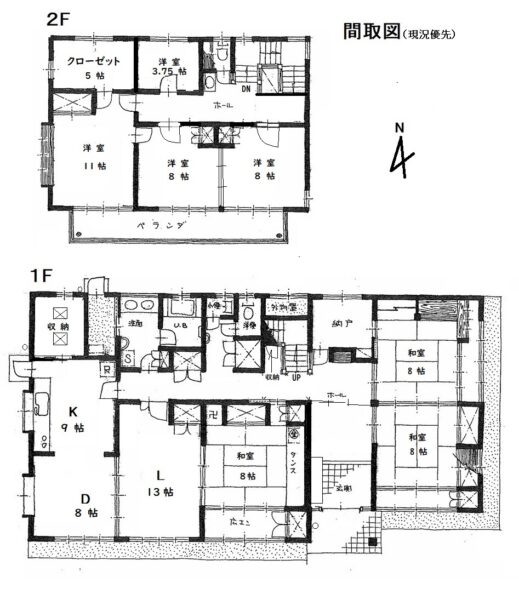 | 間取内容 | LDKS、和室8帖×3、洋室11帖、8帖×2、3.75帖、クローゼット(5帖) |