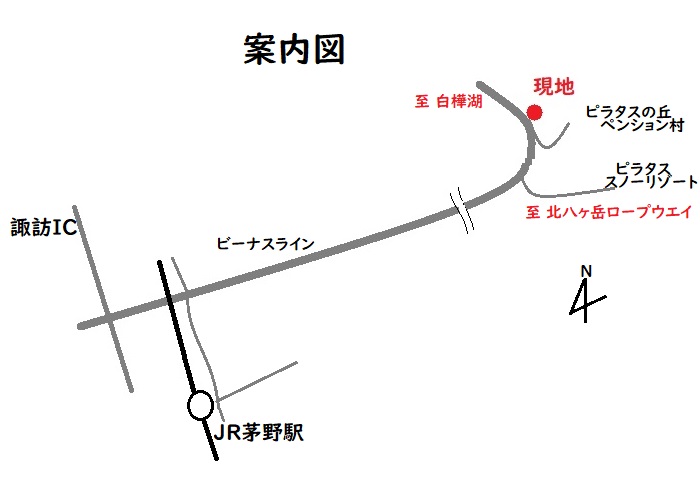 交通 | JR中央本線 JR茅野駅から18㎞(車で37分)、中央自動車道:諏訪インターチェンジから20.5㎞(車で42分):諏訪南インターチェンジから23.5㎞(車で48分) |