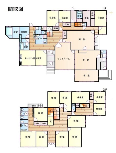 間取内容 | キッチン付き客室、客室×8、住居室×6,ラウンジ、食堂、厨房 |
