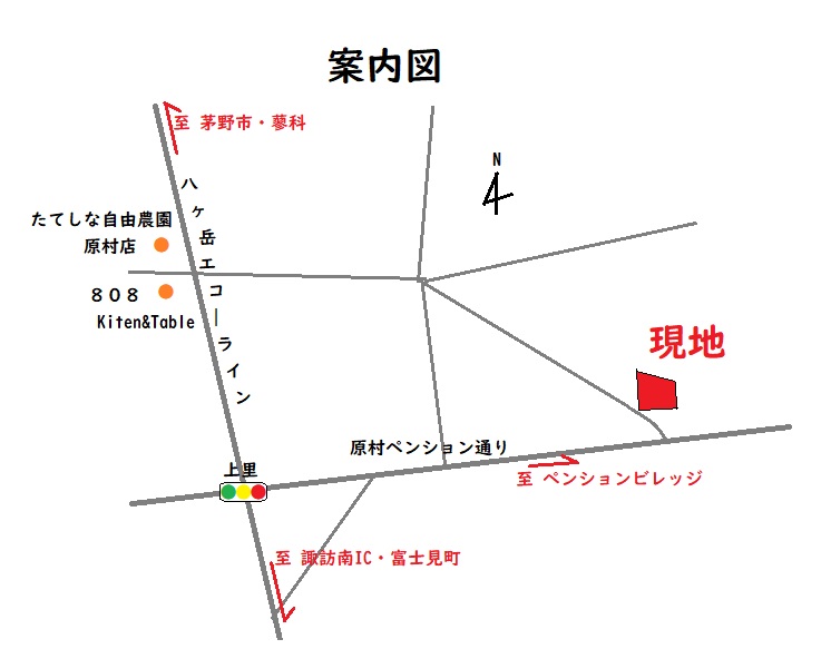 原村ペンションビレッジへ向かうペンション通りから少し北側の広い土地です。