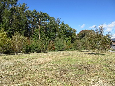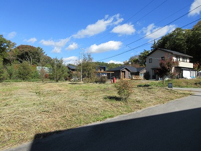 村中心街から2km「はなみずきの里」隣の土地。車の通行の少ない立地です。